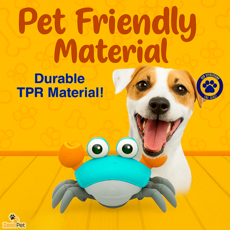 Meet ZestiScuttle™, the crawling crab that runs away, reacts to motion, and keeps your pets and kids chasing, playing, and laughing for hours.